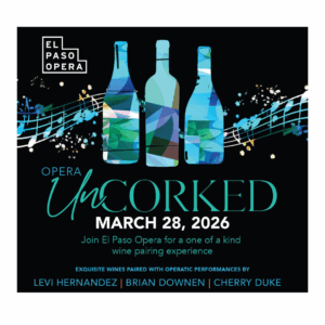 OPERA UNCORKED New event pairing exquisite wines with live opera performances! Tickets & Information BOHEMIOS 4-performance tour May 28-31, 2026 FREE with reserved ticket. Tickets & Information El Paso Opera YouTube page Images from throughout our seasons!